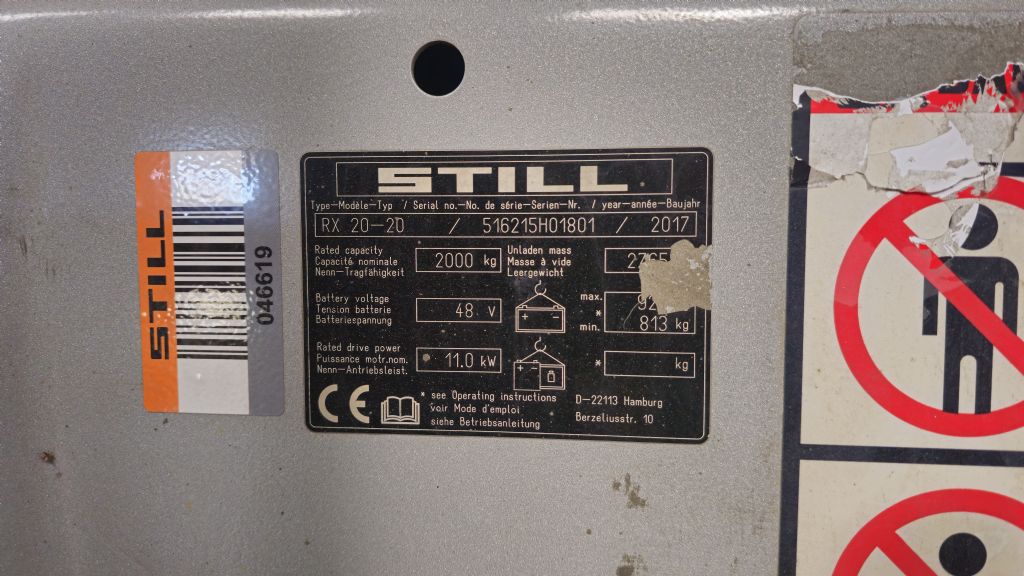 Leistung: 11 kW Batterie: Still, 48V, 625Ah, Ladegerät: |