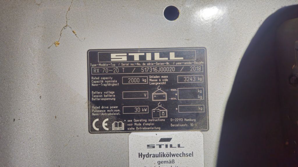Hersteller: Still Typ: RX70-20T Bauart: Dieselstapler Antriebsart: Treibgas Tragkraft: 2000 kg Baujahr: 2018 Stunden: 9599 Zustand: gut |