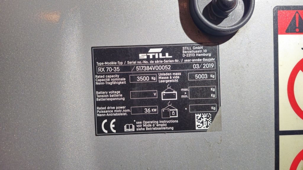 Hersteller: Still Typ: RX70-35 Bauart: Dieselstapler Antriebsart: Diesel Tragkraft: 3500 kg Baujahr: 2019 Stunden: 2577 Zustand: gut |